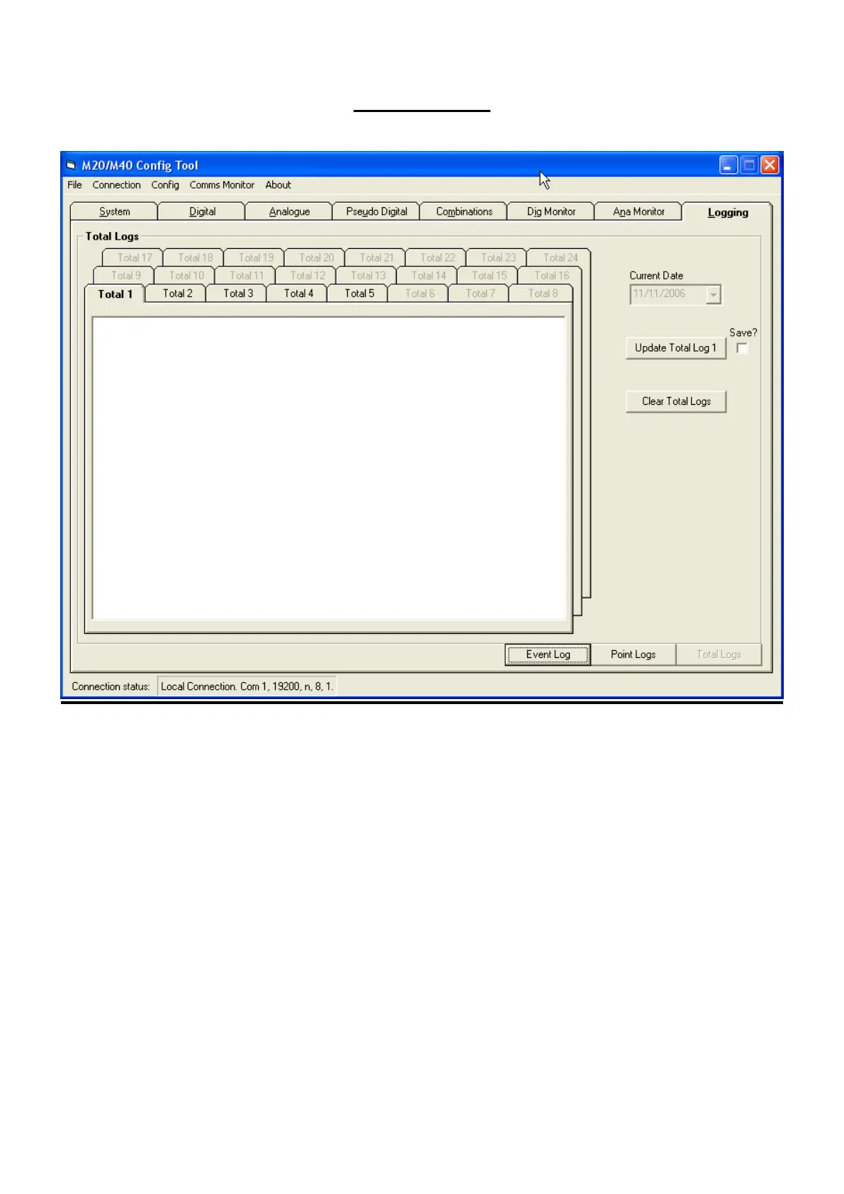 Note: Only Analogue Total channels that have been configured as active logging channels will have