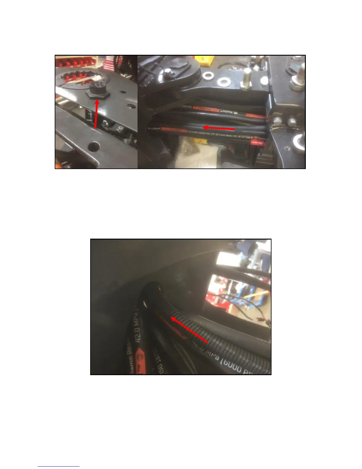 and rear chassis along the hydraulic hoses as shown above in Fig. 13. Fasten socket to front