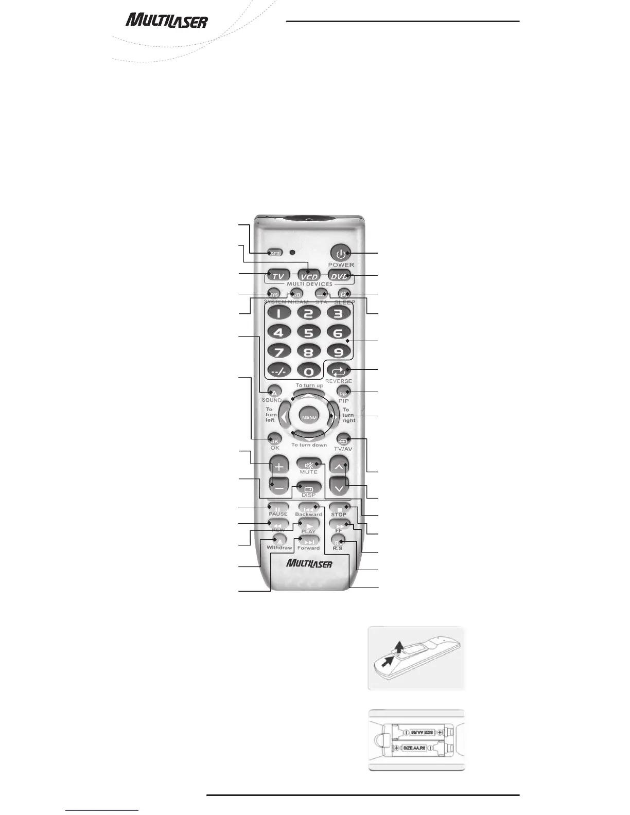 tamanho AA (não incluso) de acordo com o símbolo da polaridade (+ / -)