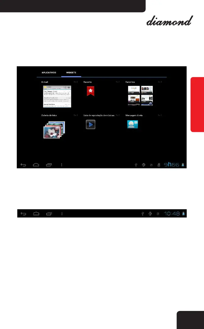 relógio, o status da conexão wi-fi, o status da bateria etc.