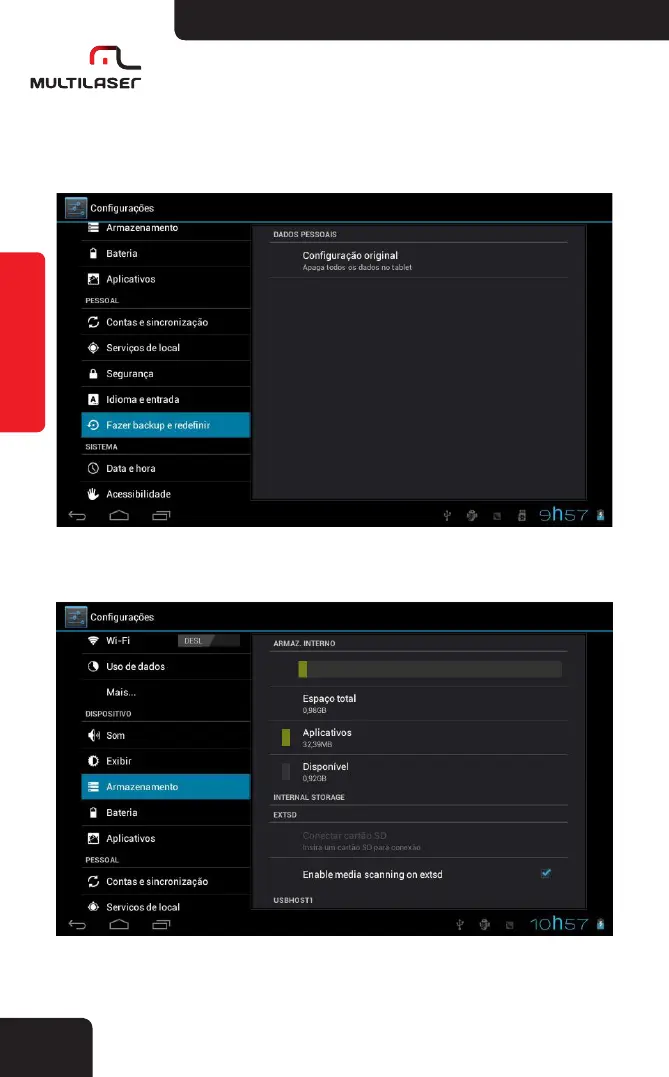 Possibilidade de restaurar as configurações de fábrica.