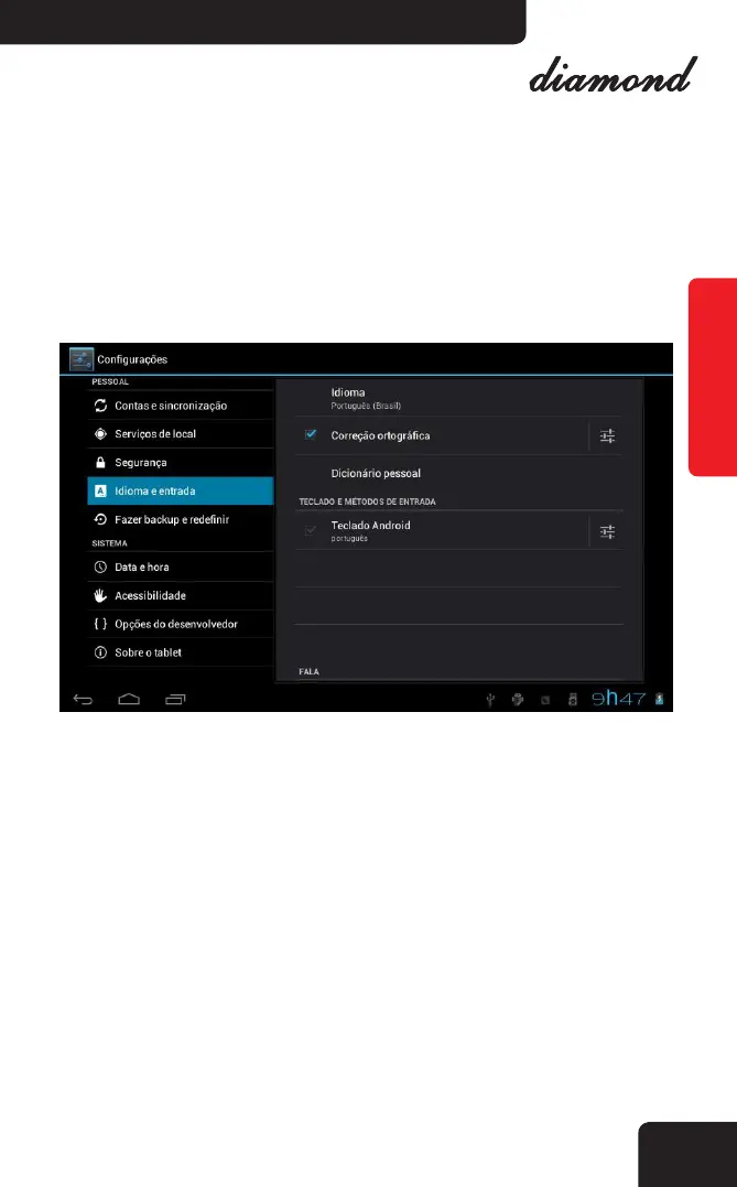 • Idioma e teclado