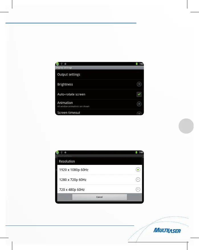 Escolha o item “settings-Display-Output settings-Output mode” [configurações-Tela-Saída configurações-modo