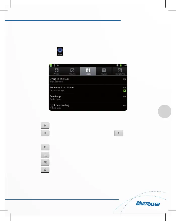• Clique em : Toca a música anterior, a pressão longa dessa tecla, faz voltar de forma rápida.