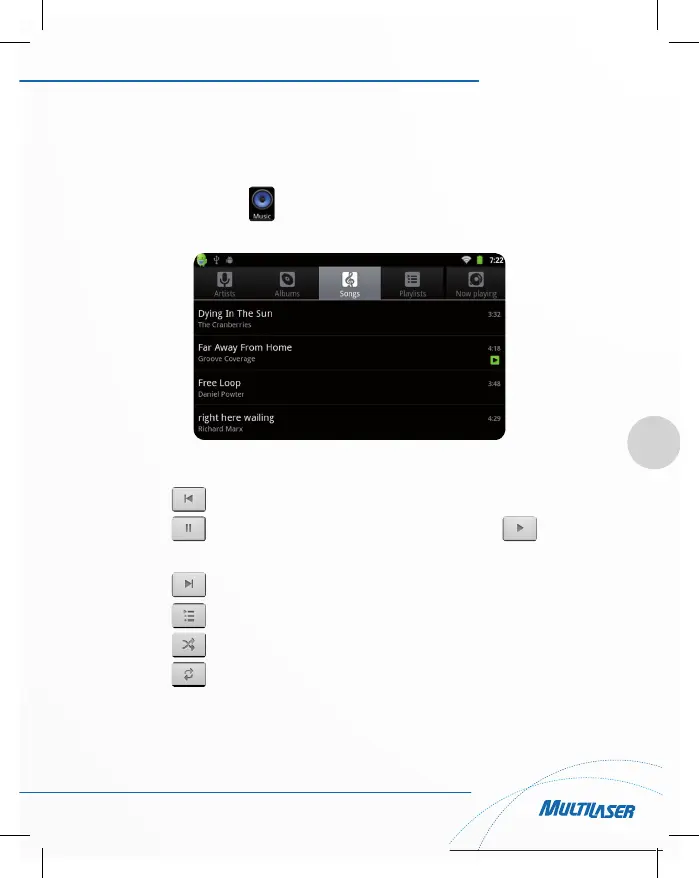 • Haga clic en : Toca la música anterior, la presión larga de esa tecla, hace volver de forma rápida.