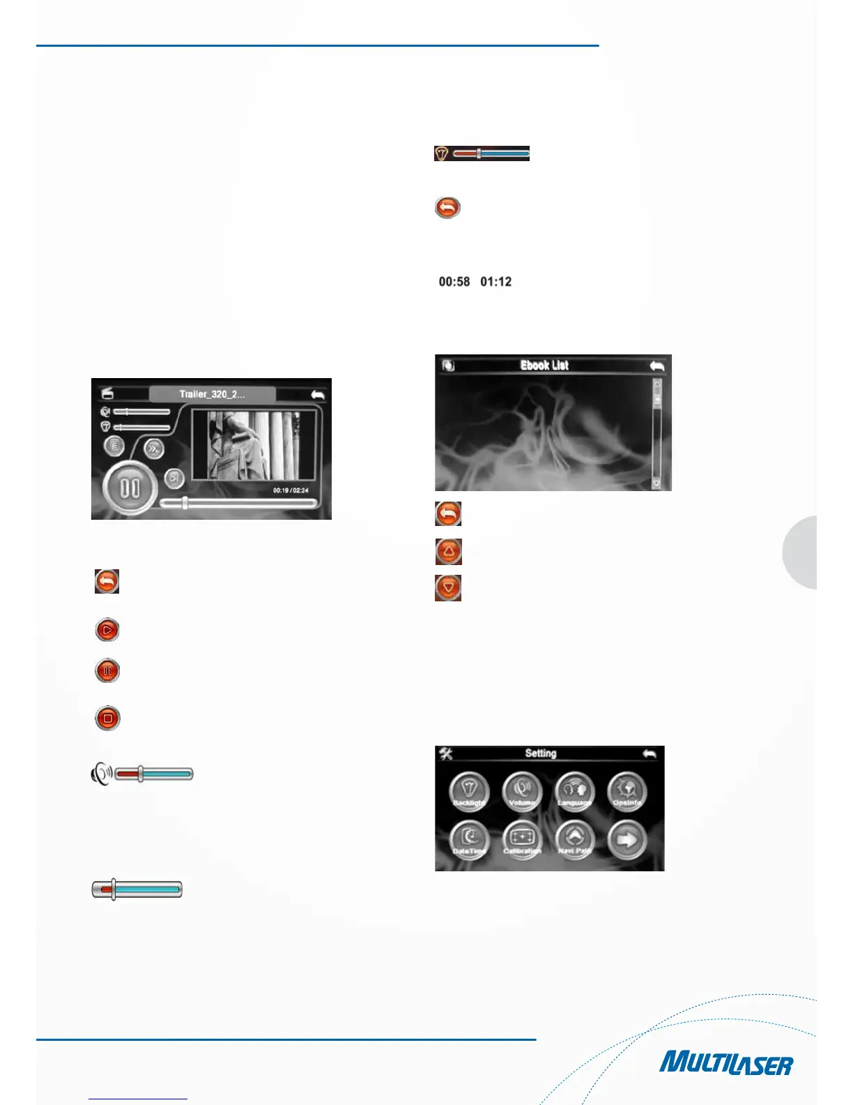 As configurações abarcam “volume”, “backlight”, “data time”,