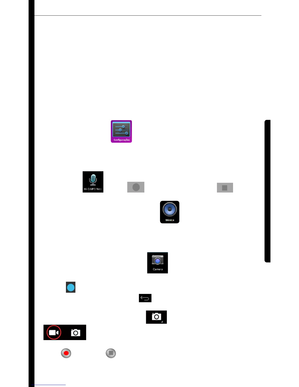 Para iniciar a gravação de vídeo, toque na opção e em seguida, selecione o modo filmadora