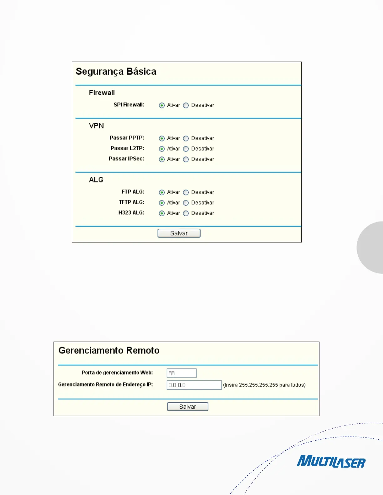 2) Para alterar o número da porta de gerenciamento Web: Faça o login no Roteador, clique no menu “Segurança” à esquerda