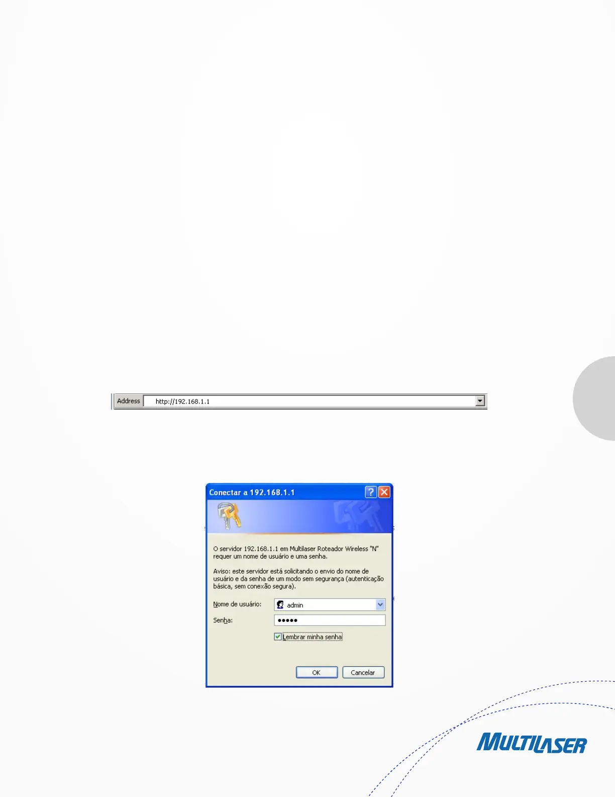 After a moment, a login window will appear, similar to the Figure 3-4. Enter admin for the User Name and Password, both in lower case