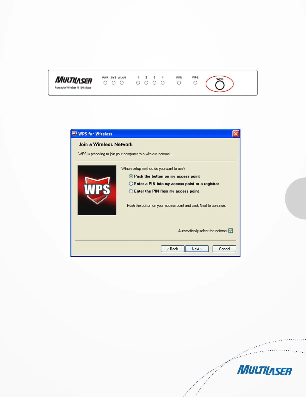 Passo 2: For the configuration of the wireless adapter, please choose “Push the button on my access point in the
