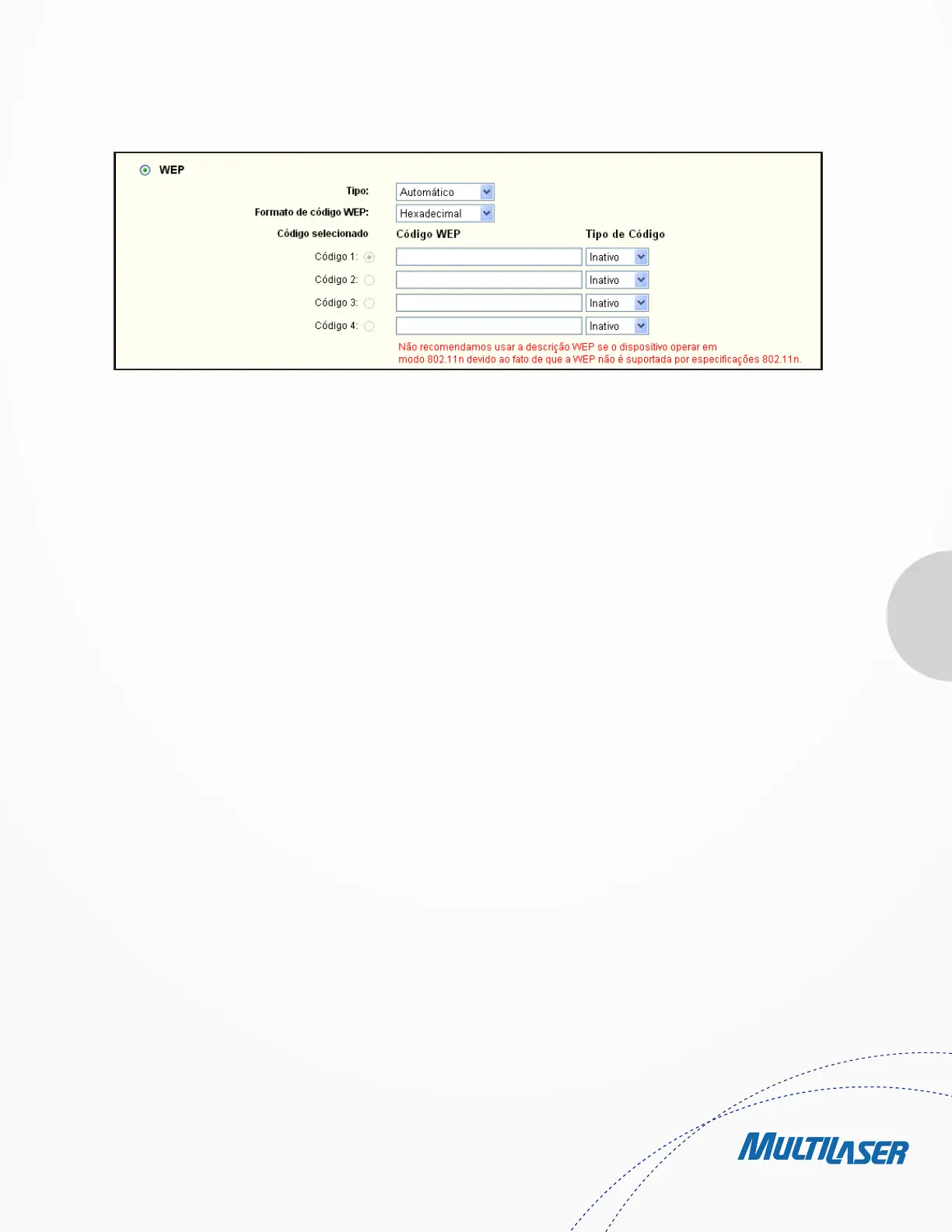 • WEP Key - Select which of the four keys will be used and enter the matching WEP key that you create. Make sure these