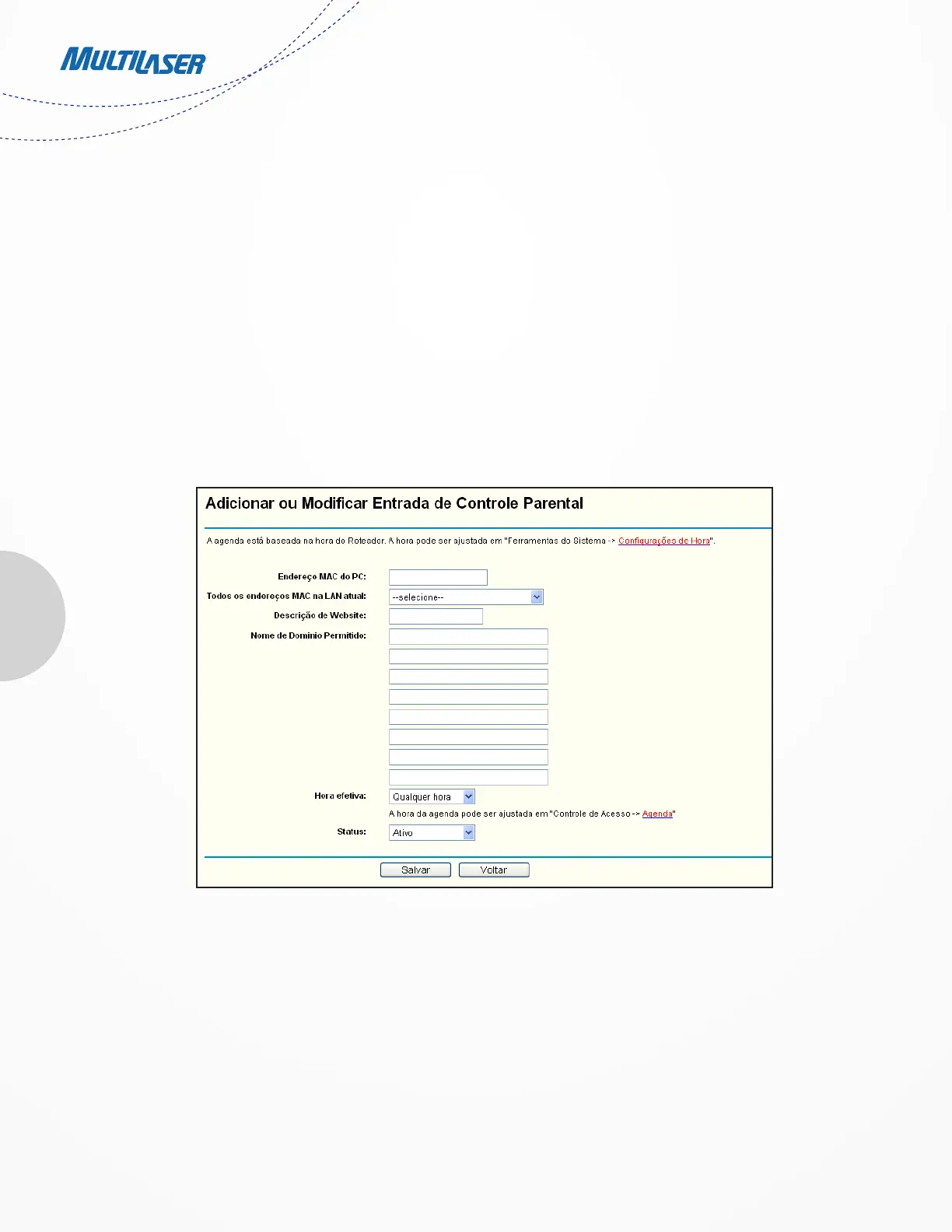 For example: If you desire that the child PC with MAC address 00-11-22-33-44-AA can access www.google.com on Saturday only while