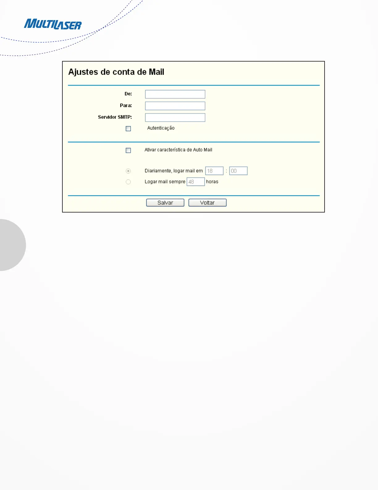 • Enable Auto Mail Feature - Select it to mail logs automatically. You could mail the current logs either at a specified