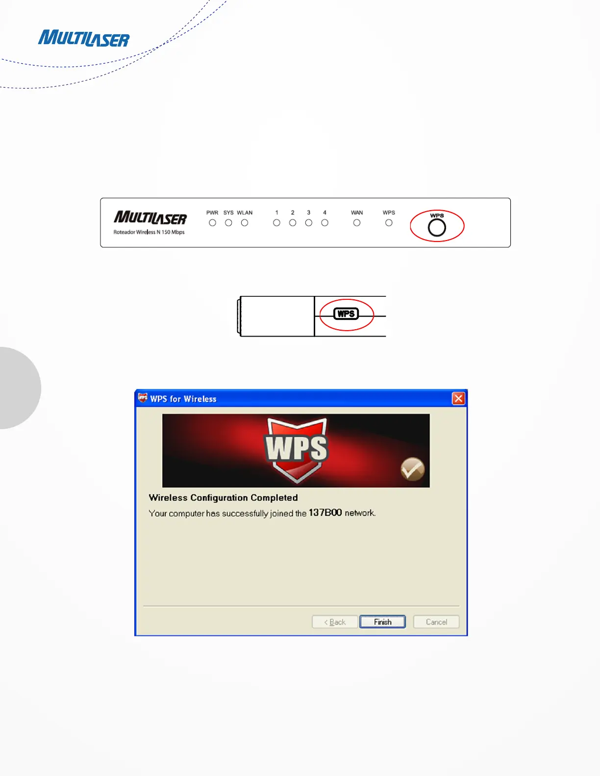 Passo 1: Pressione o botão WPS no painel frontal do Roteador.