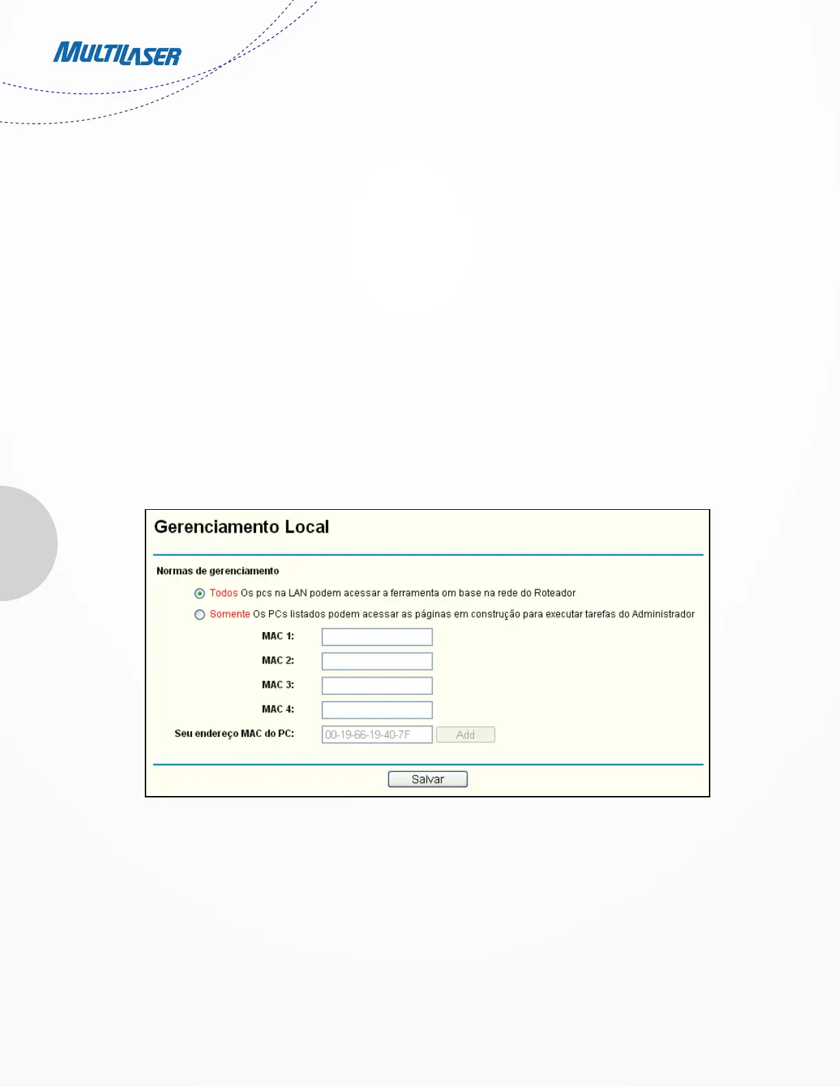 Se você deseja que PCs com determinados Endereços MAC acessem a página de Setup do utilitário Web do Roteador localmente de