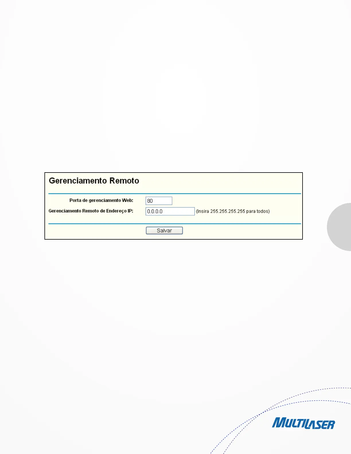• ENDEREÇO IP DE GERENCIAMENTO REMOTO – ESSE É O ENDEREÇO CORRENTE QUE VOCÊ UTILIZARÁ QUANDO ACESSAR