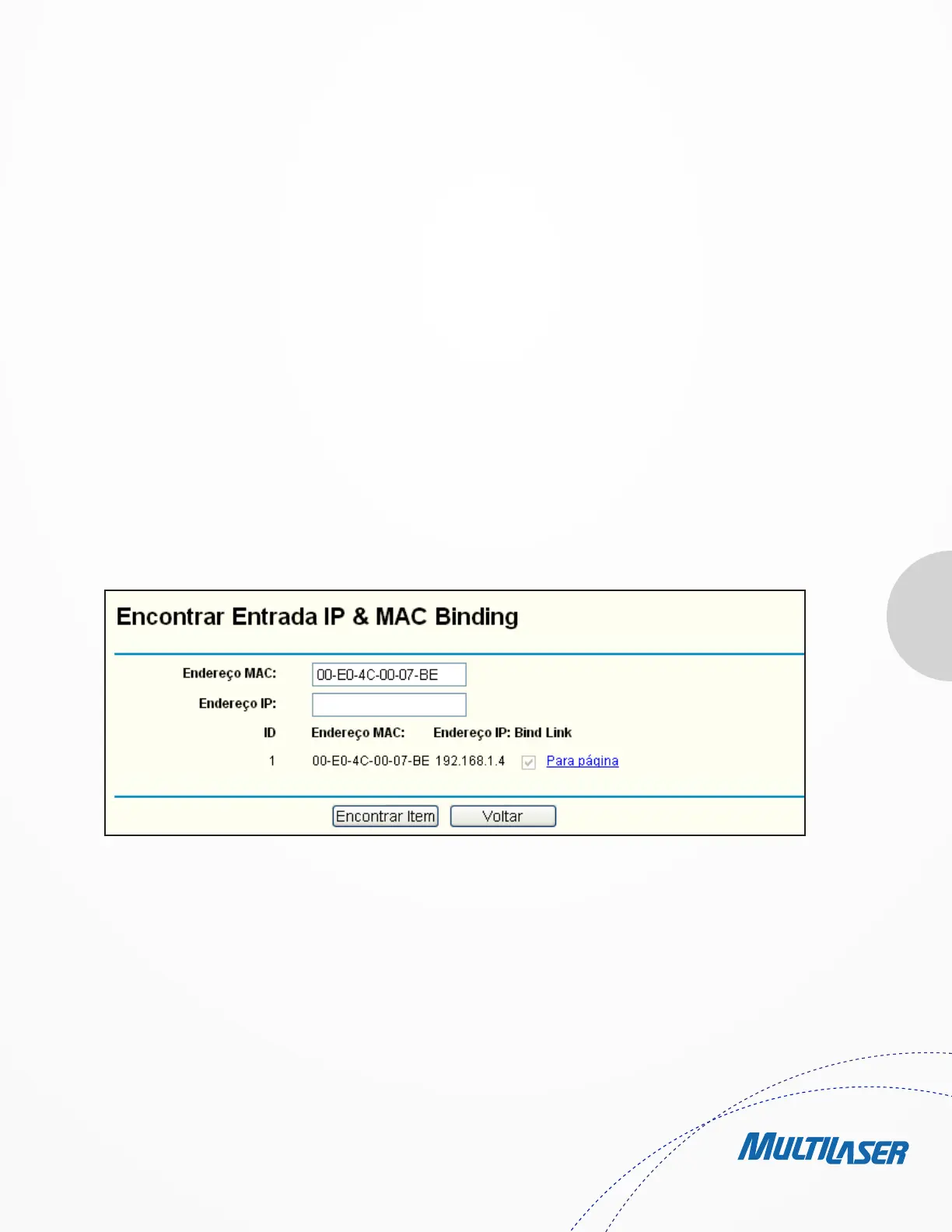 Figura 4-66 Procurar Entrada de Ligação de IP e MAC