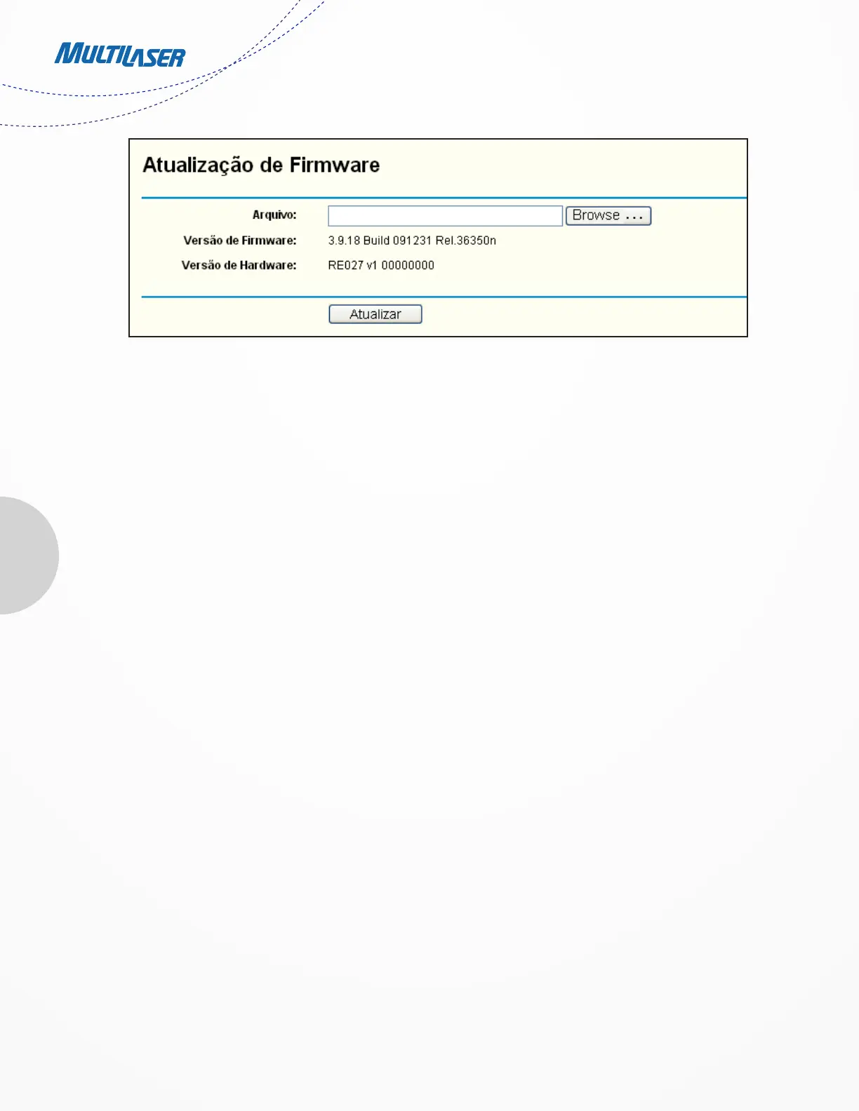 Faça o download do arquivo de atualização mais recente do firmware a partir do website da Multilaser (www.multilaser.com.br).