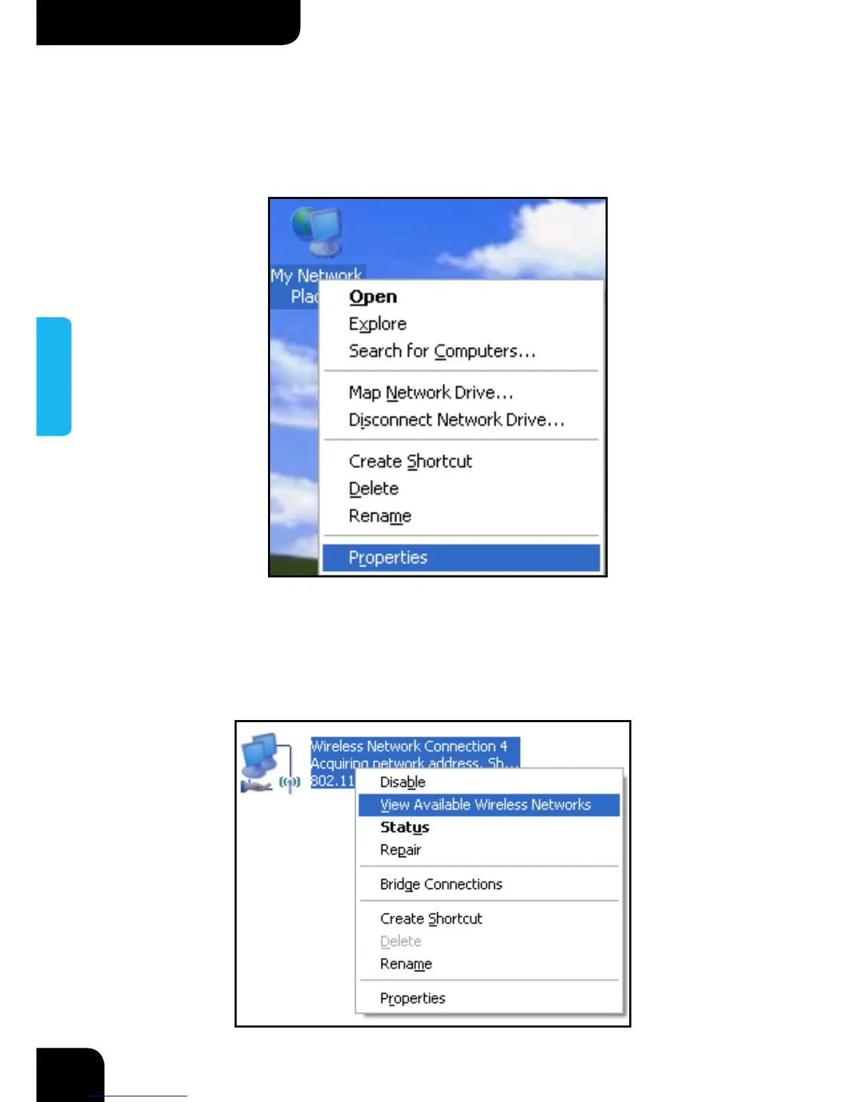 Connection" e selecione "View Available Wireless Networks" como mostrado na
