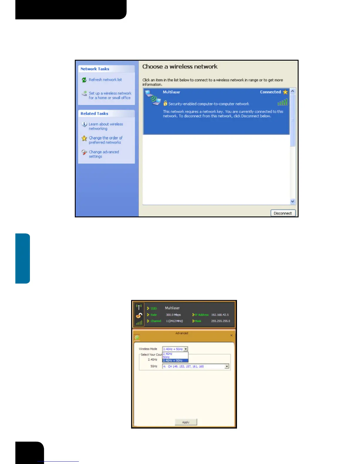 wireless adapter. You have three options to choose from: 2.4G, 5G or 2.4G+5G. The