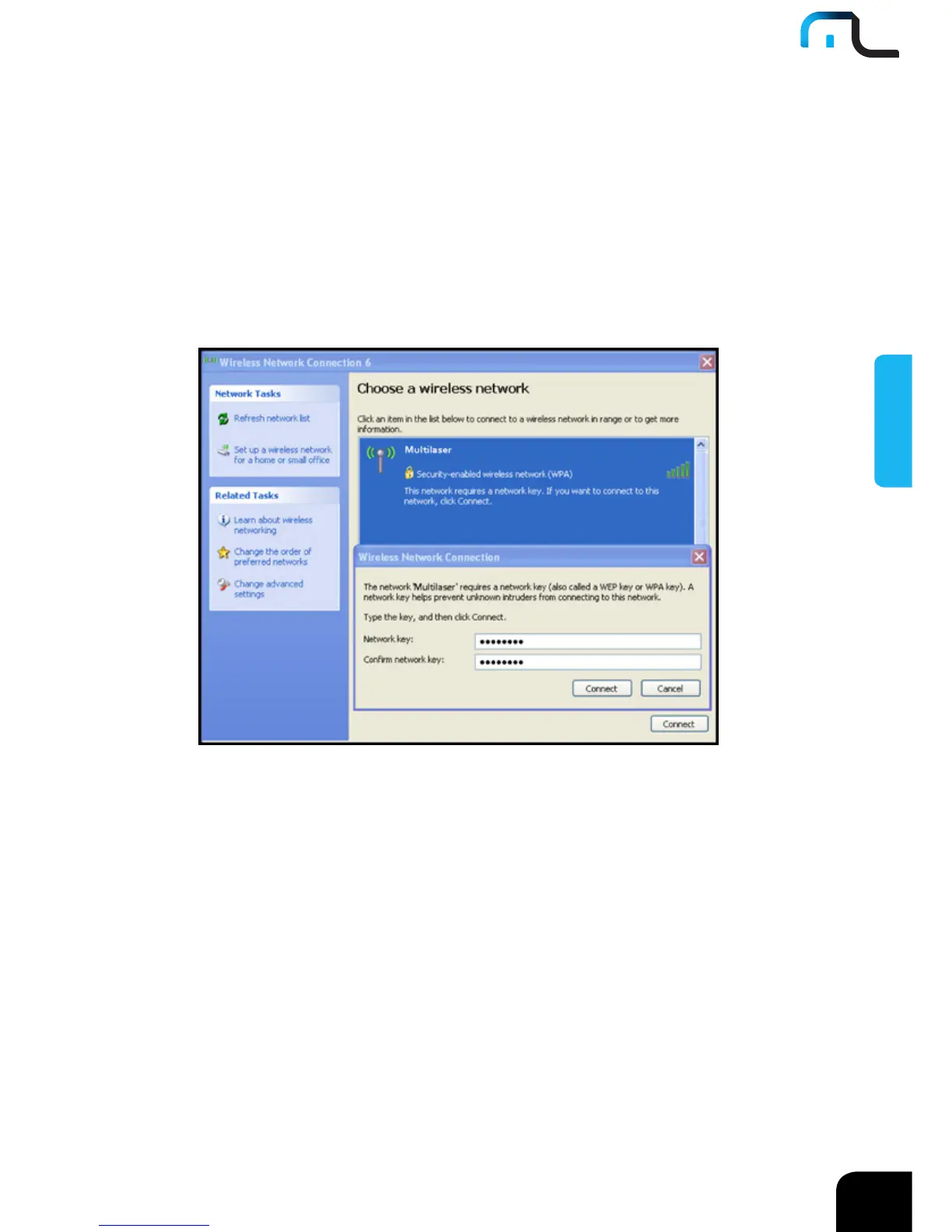 nessa rede wireless. Insira a senha na caixa de diálogo da senha (a senha inserida é