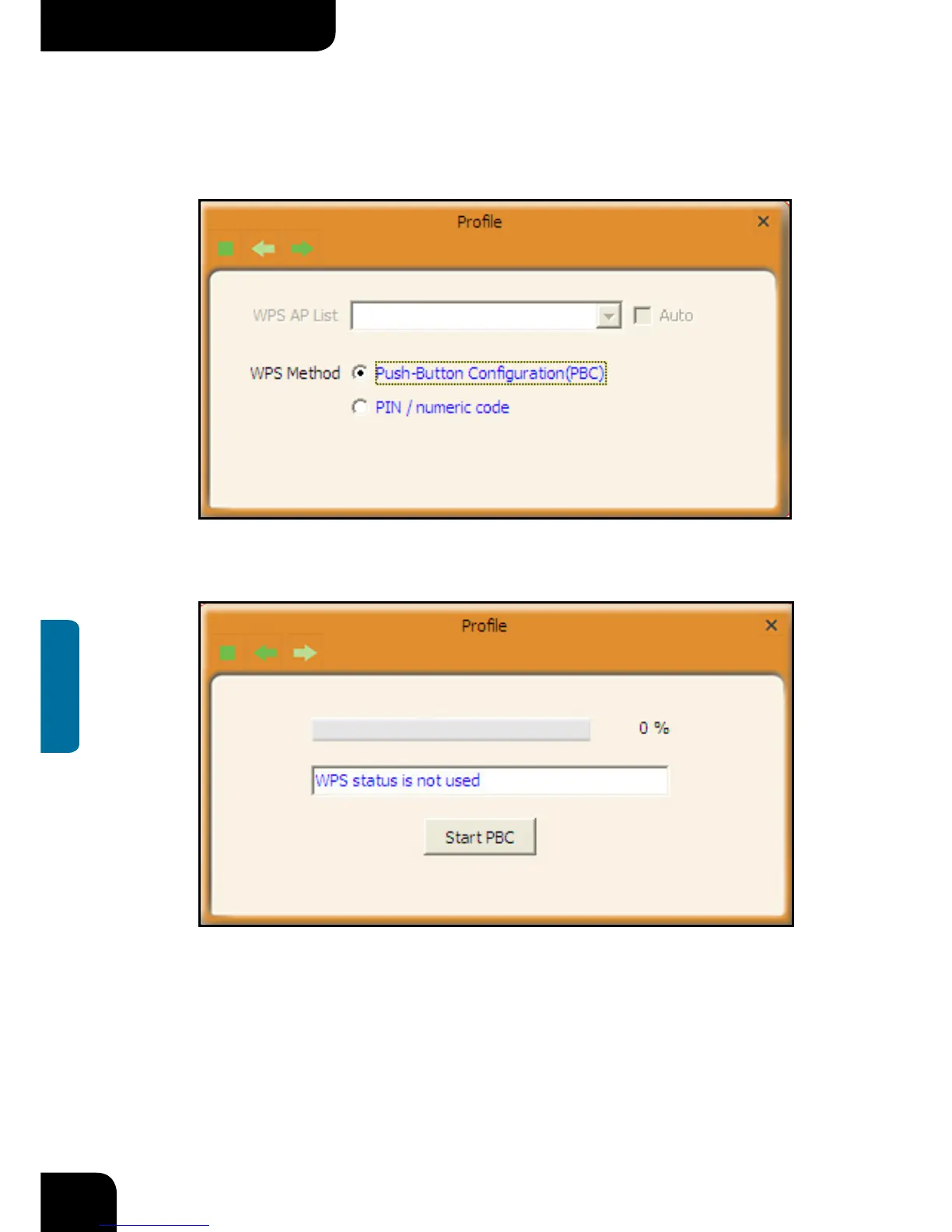 2. On the Profile List screen, select “Push-Button Configuration”(PBC) and then click