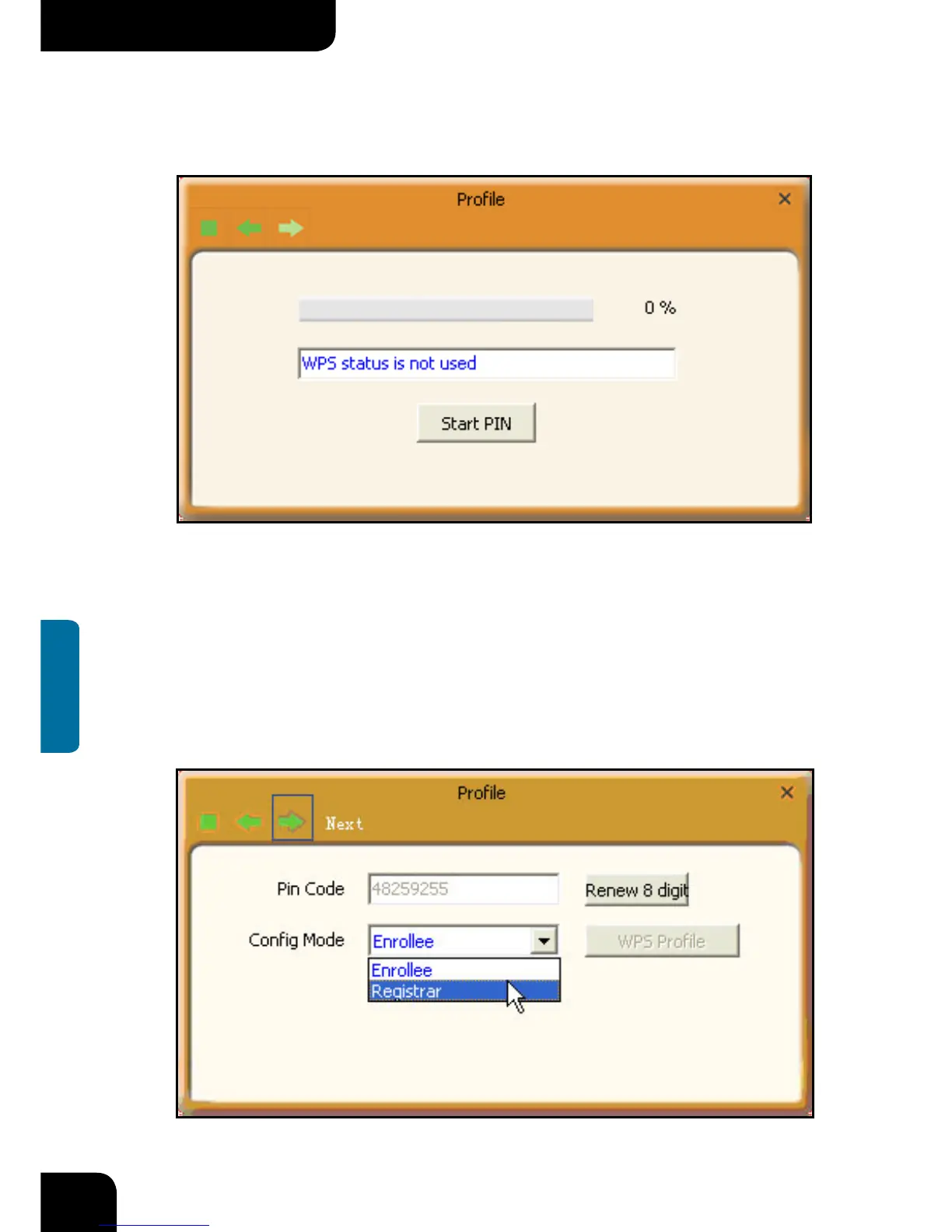 Click the next button on the Profile List screen and click “Start PIN” to start the PIN code