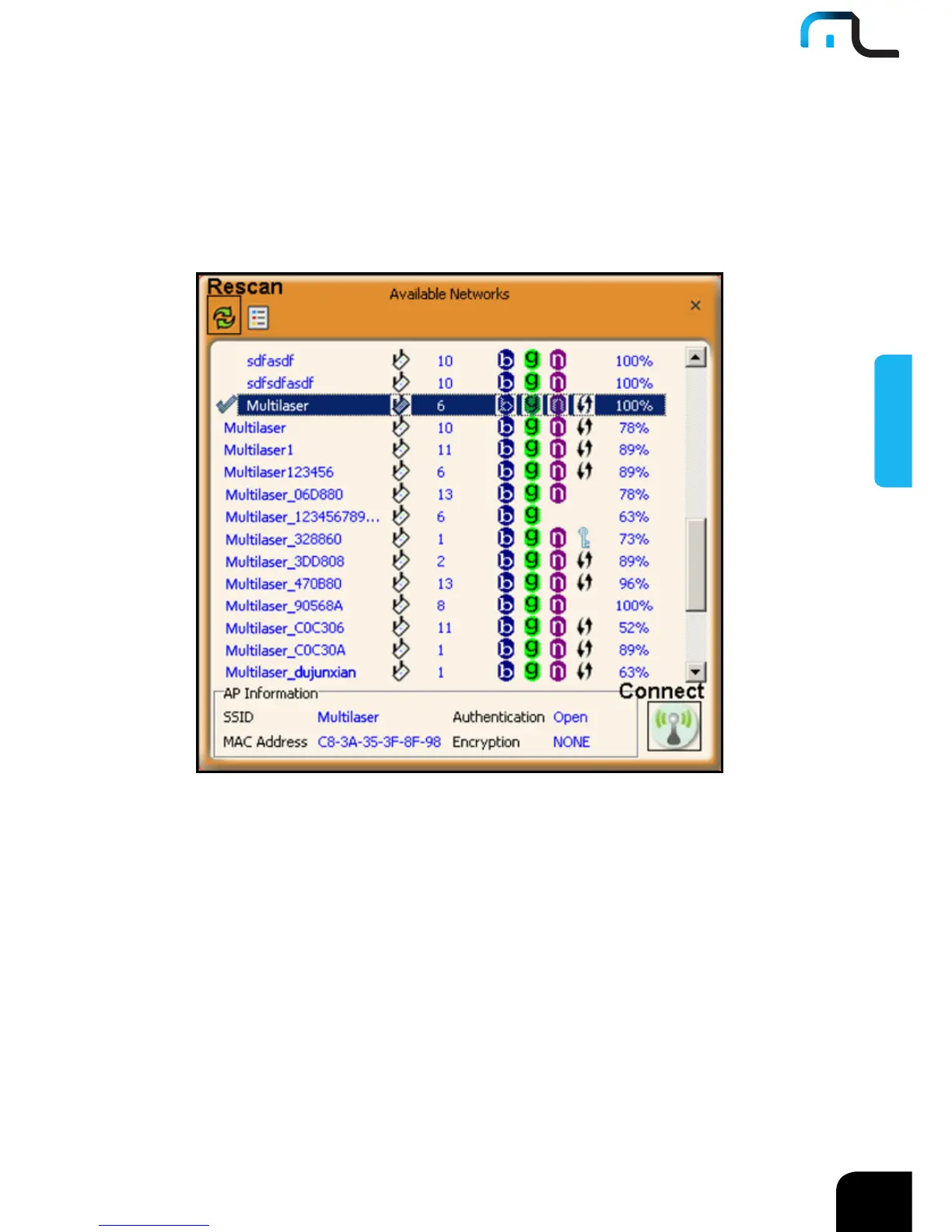 Antes de conectar a uma rede wireless, clique no botão "Rescan" para atualizar a lista