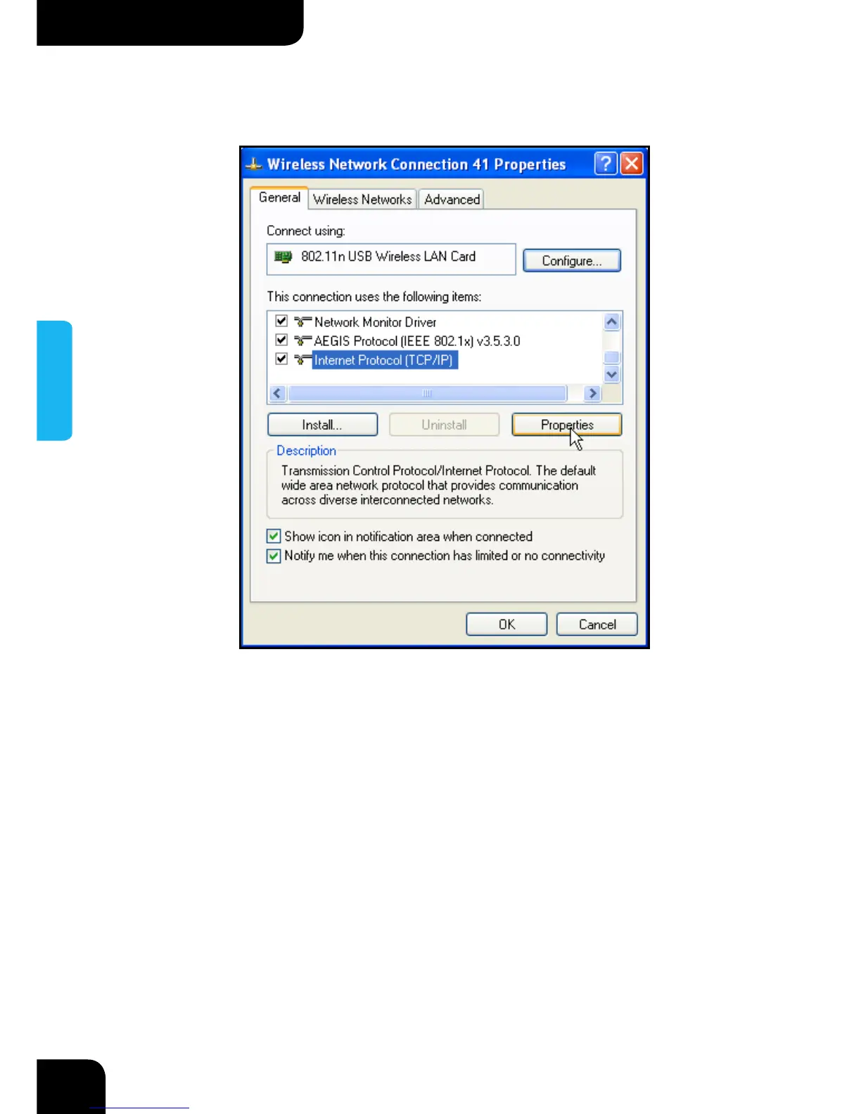 c. Selecione "Internet Protocol(TCP/IP)" e clique em “Properties".