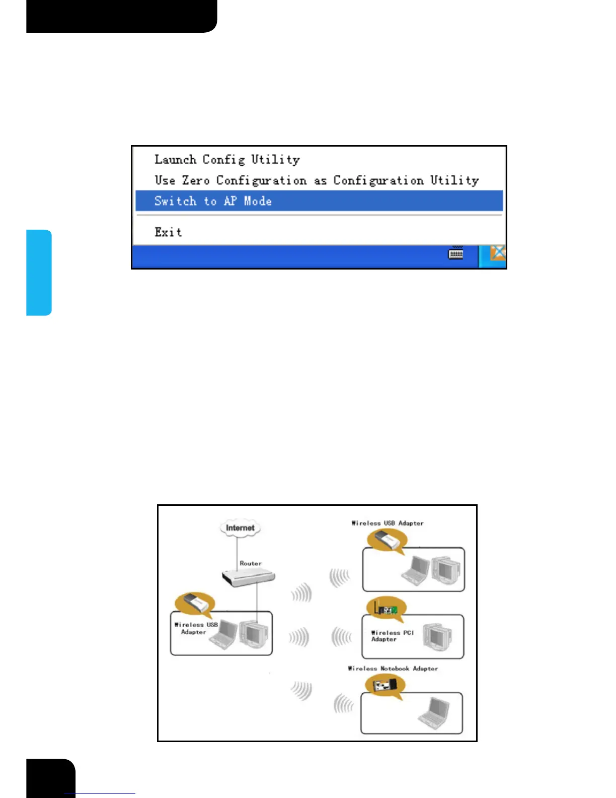 Neste modo, o adaptador wireless age como um AP para transmitir o sinal wireless e