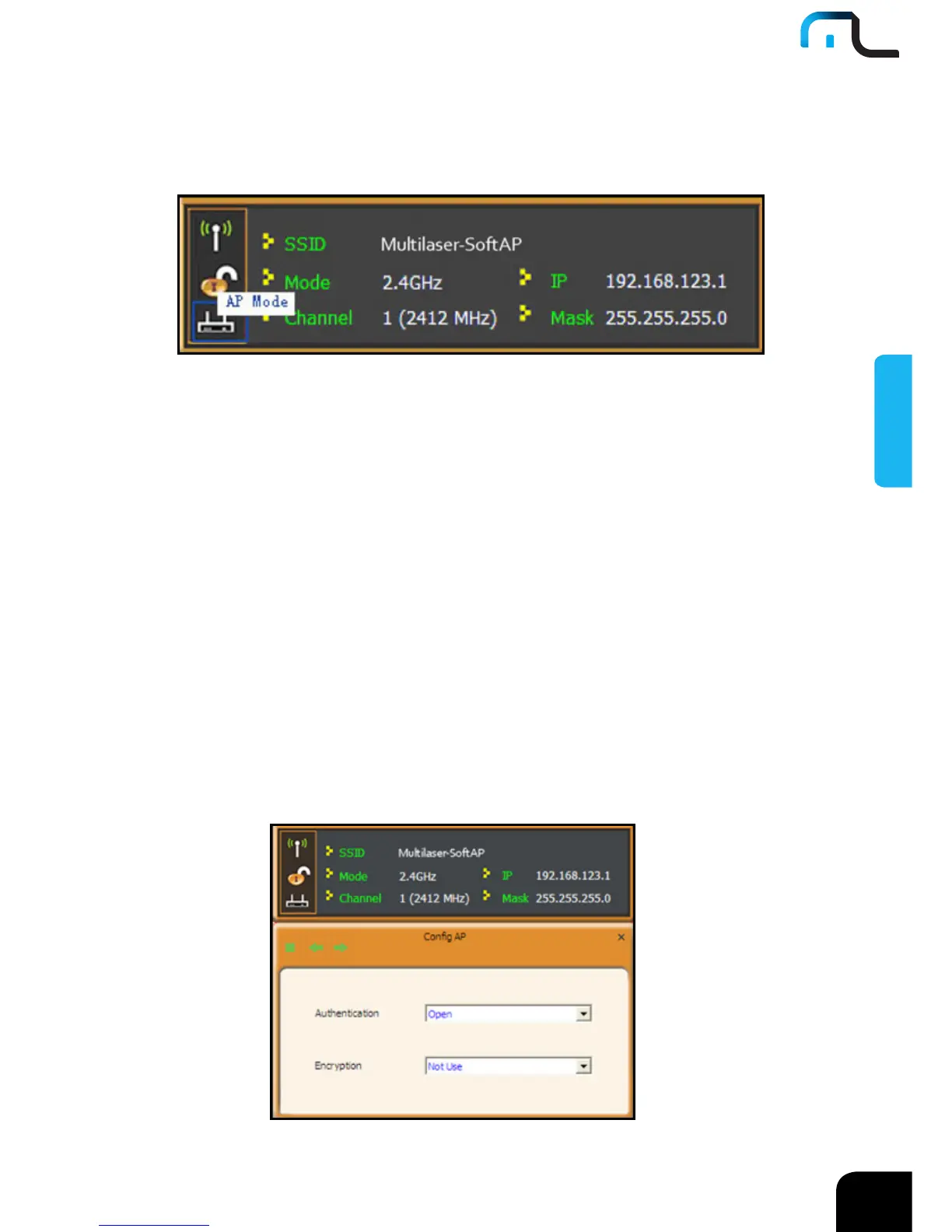 Ao mudar para o modo AP, o adaptador wireless automaticamente estabelecerá