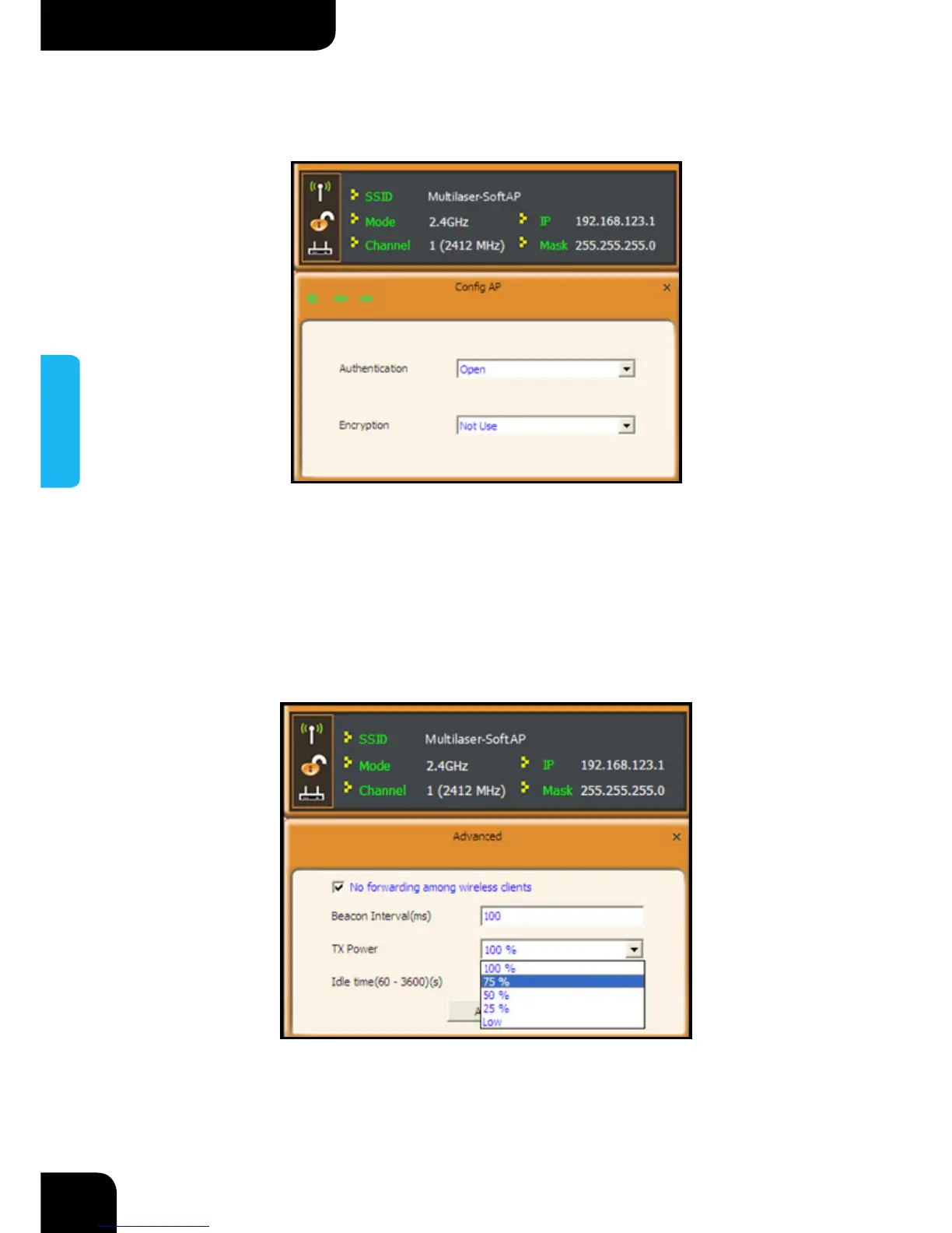 Esta tela é usada para estabelecer parâmetros avançados do adaptador wireless