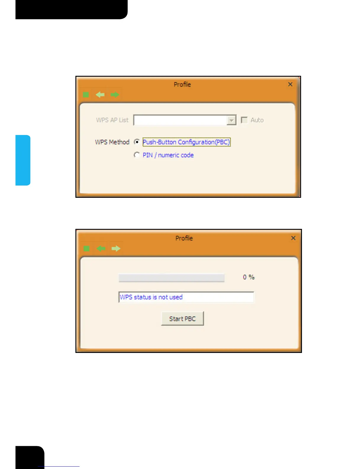 2. Na tela de Lista do Perfil, selecione "Push-Button Configuration" (PBC) e clique no