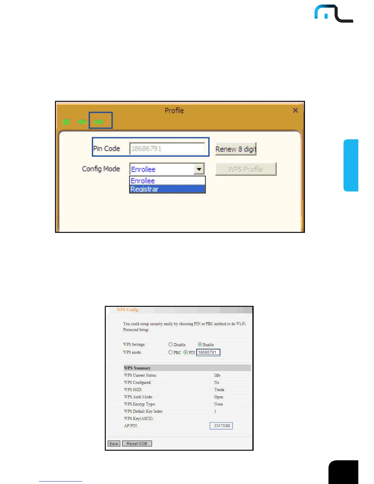 WPS, ative as configurações WPS e selecione PIN para modo WPS e então insira
