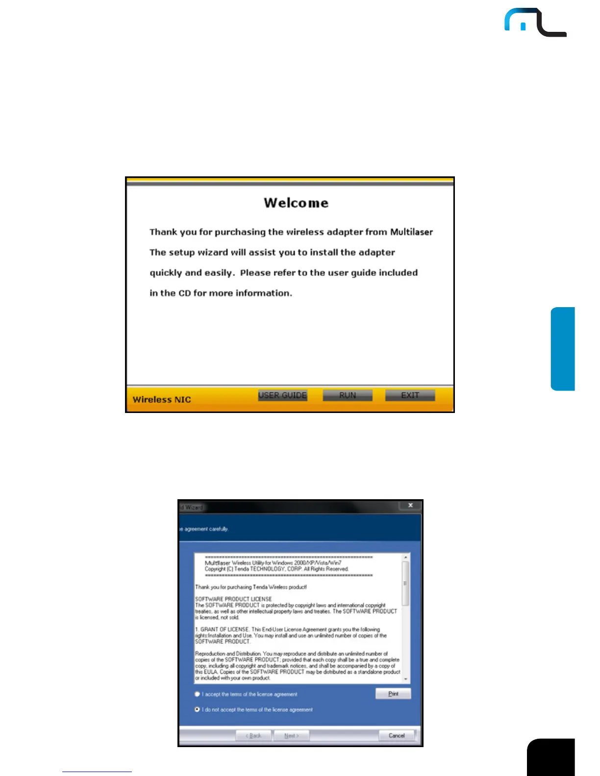 “Multilaser.exe” en el CD de software e instálelo manualmente cuando no funcione