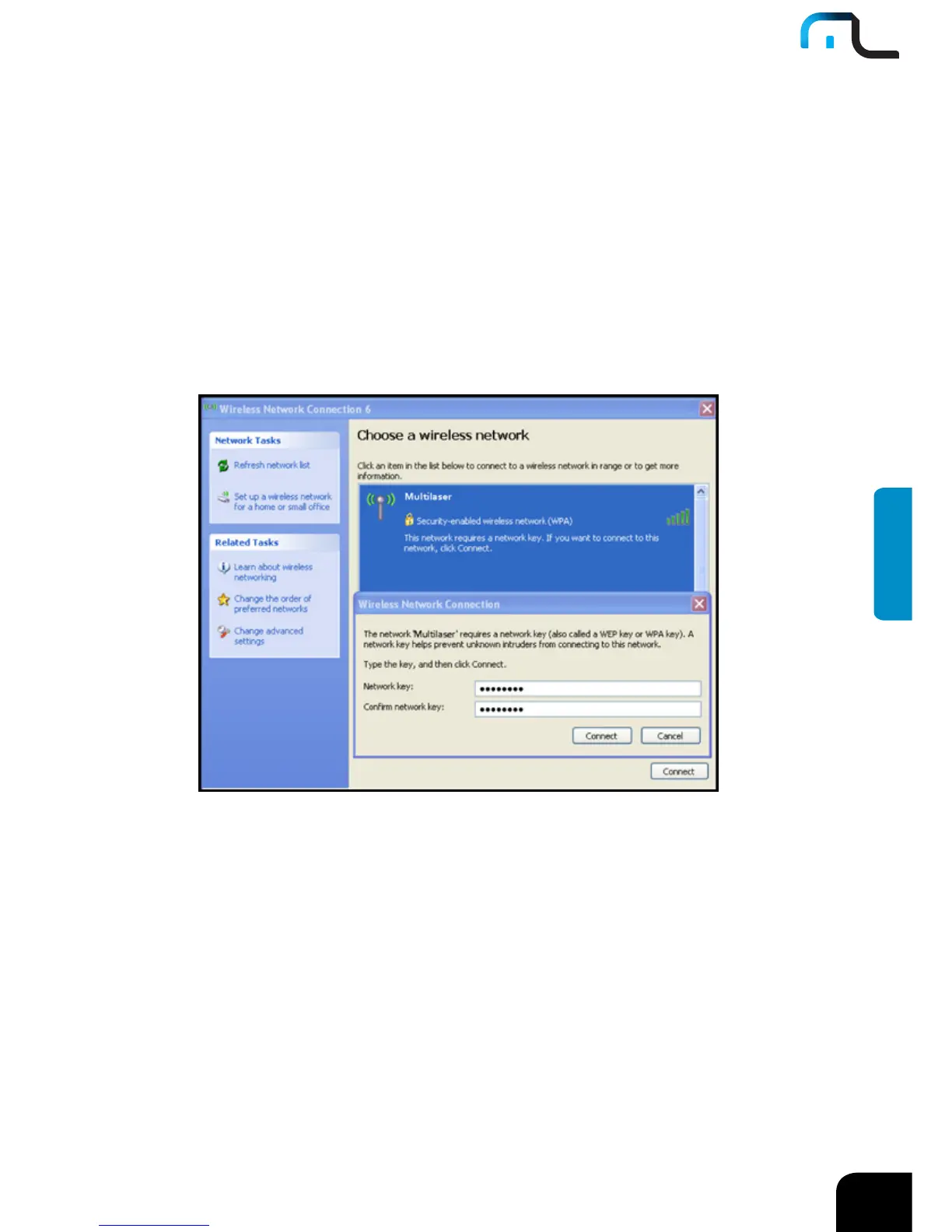 “Conect” (Conectar) o haga un doble clic en esta red inalámbrica. Ingrese la clave