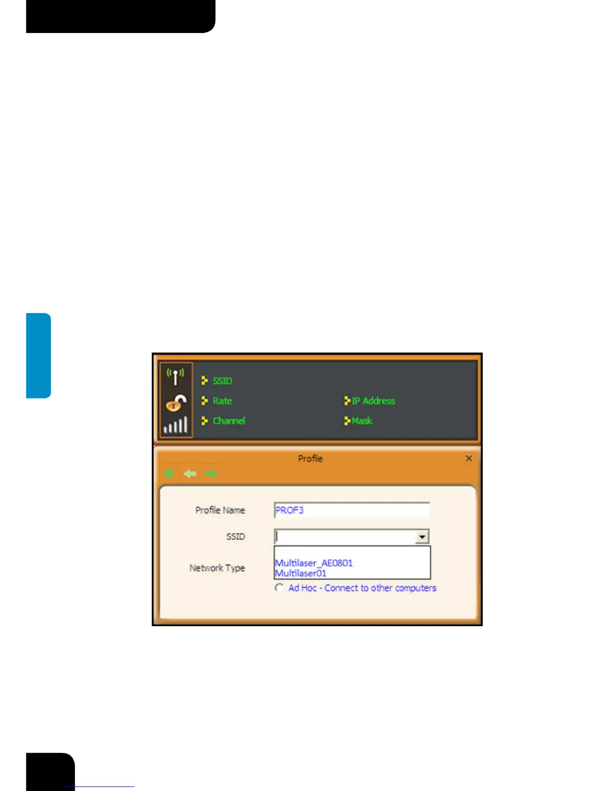 perfil SSID o puede encontrar el SSID al cual desea conectarse en la lista descendente.