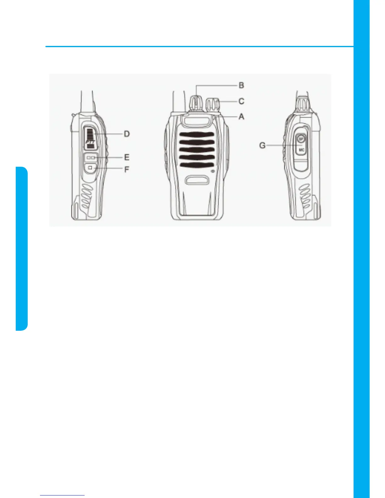 D. PTT (Push-To-Talk) Button - Keep this button pressed to transmit a massage.