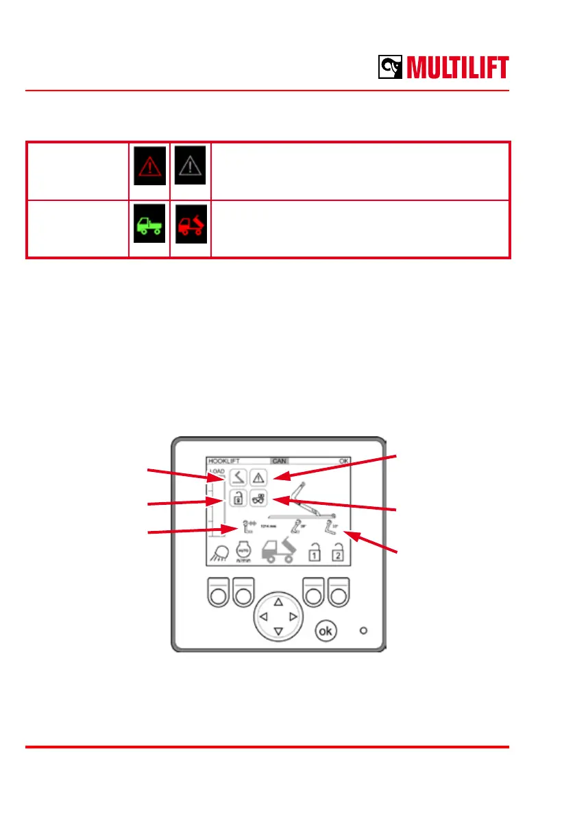 In this mode, the most important hooklift status is clearly visible. The hooklift position is