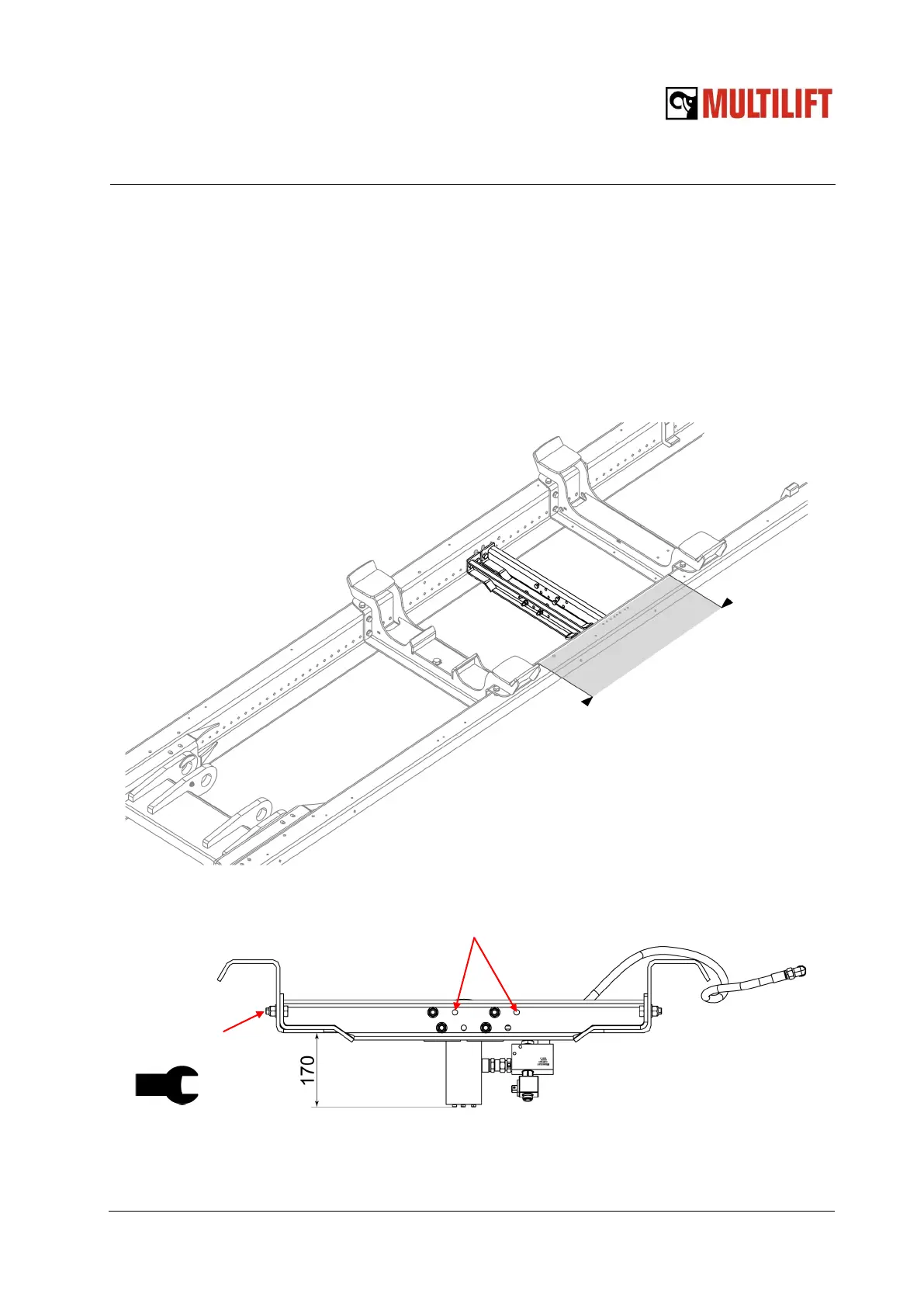 Check that the structural parts in the truck chassis allow free installation and that the hydraulic