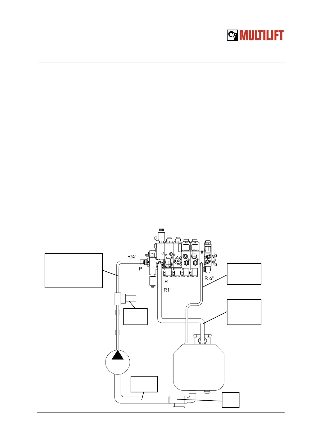 Connect the pressure line from the pump to the P port (R¾”) of the control valve of the hooklift