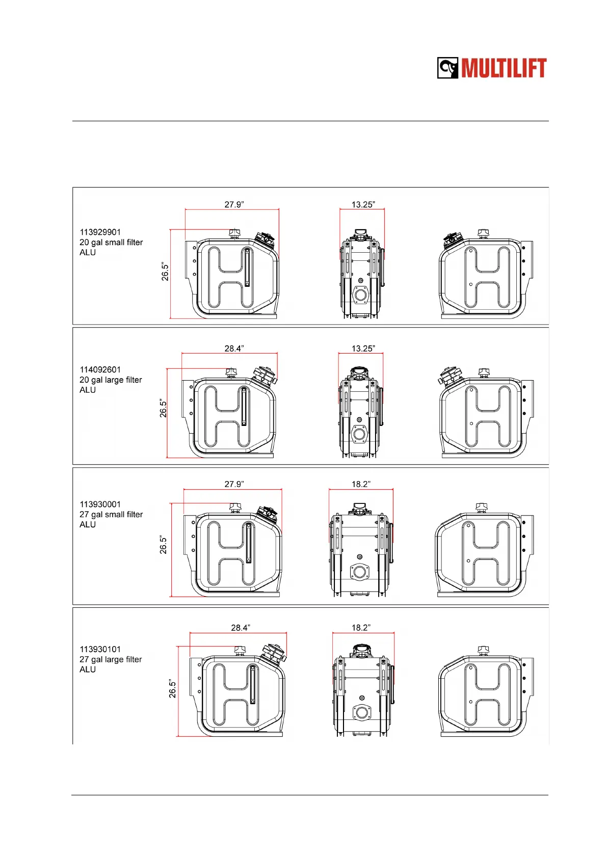 Oil tank dimension, aluminium tanks