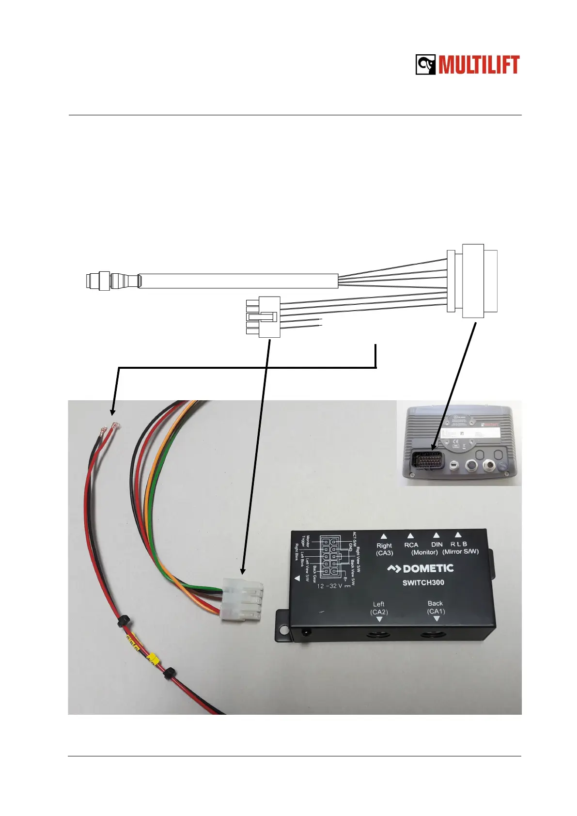 The display adapter cable is connected to the camera switch box, to the display and to the