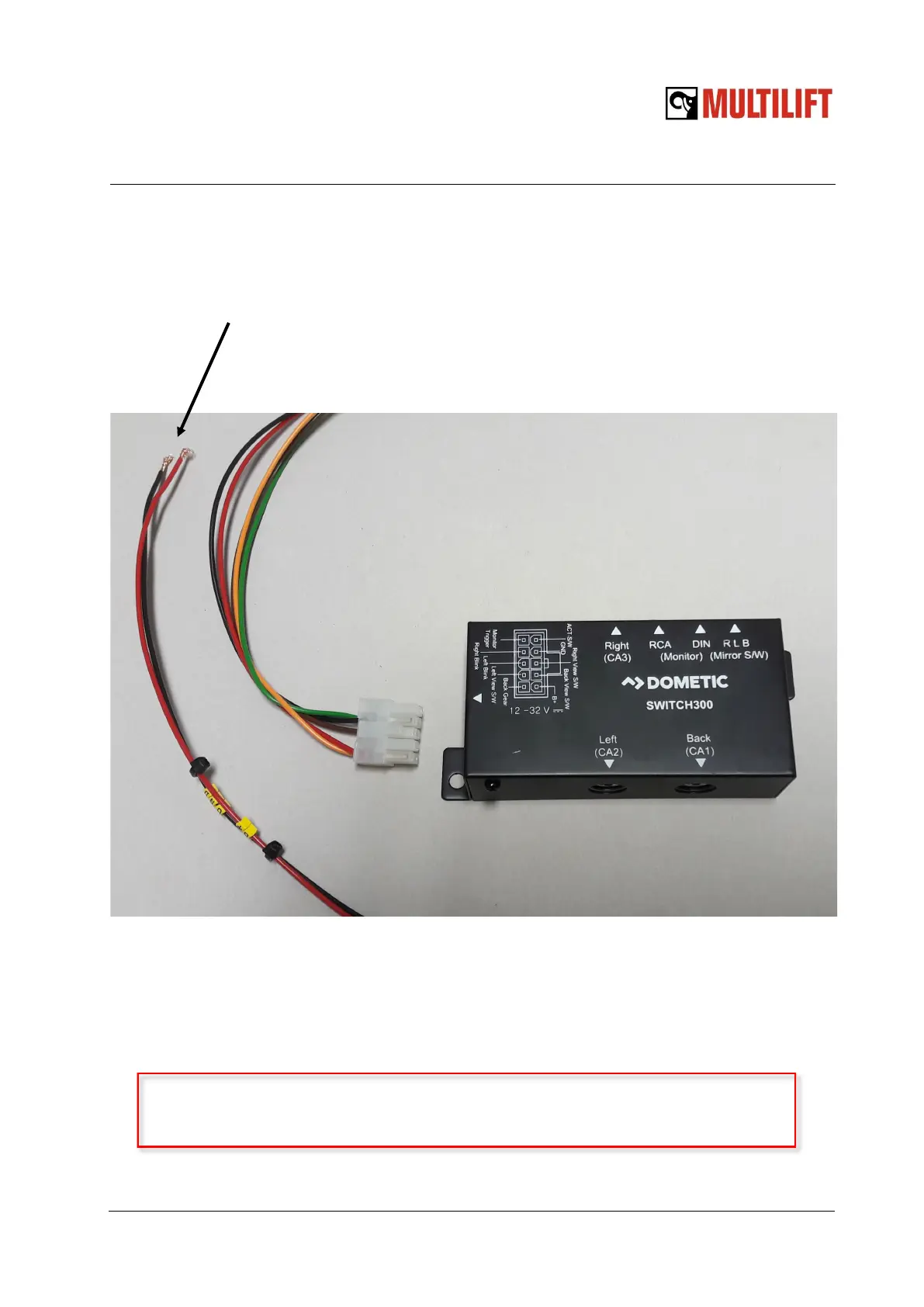 Connect the camera switch box power and ground to truck power supply (KL15):