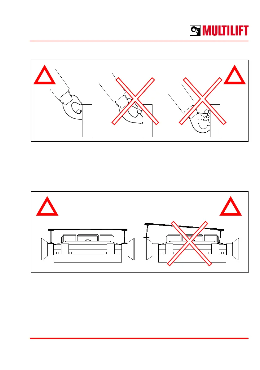 and visually that the atrack/body gripping bar is inside the lifting hook.