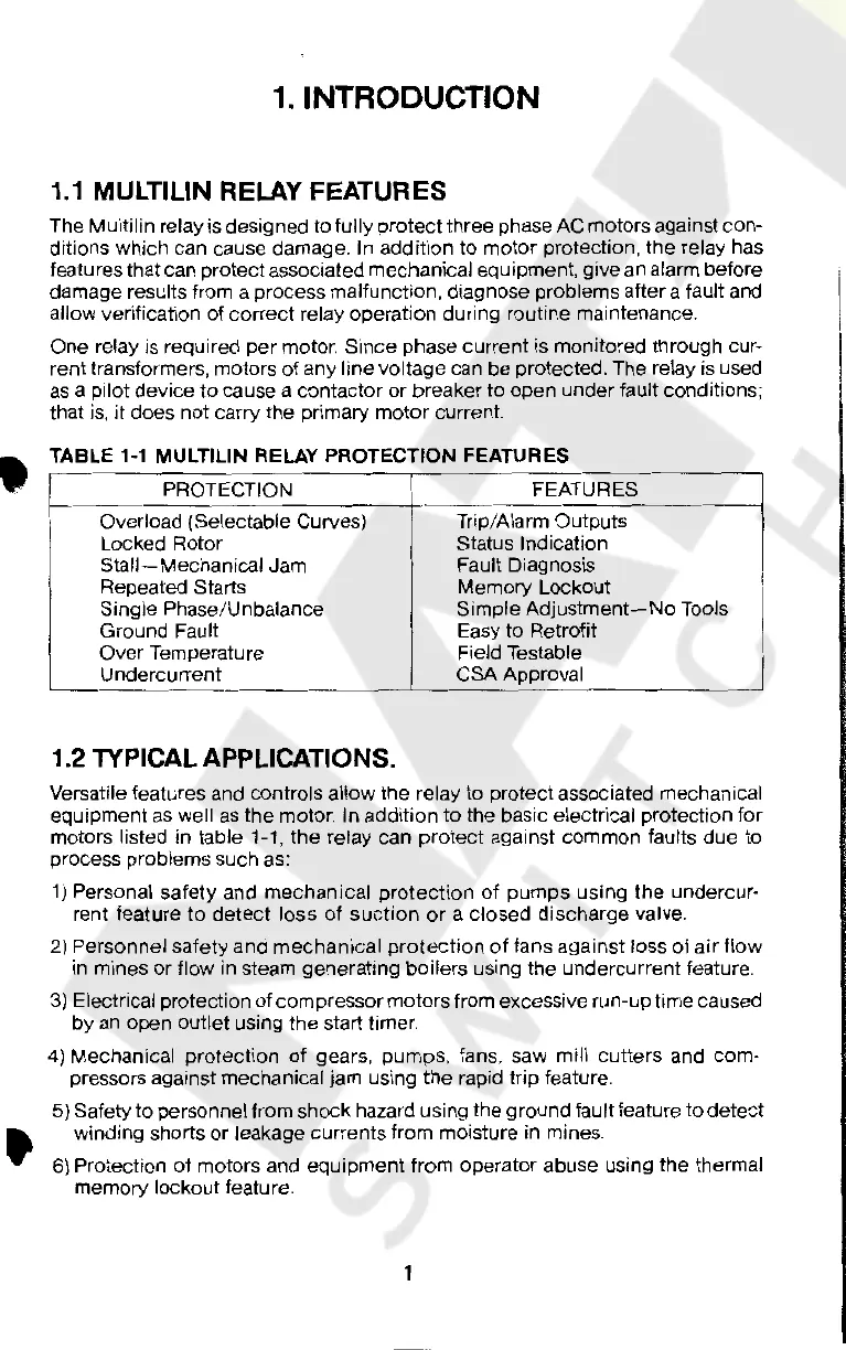 motors listed in table 1-1, the relay can protect against common faults due to
