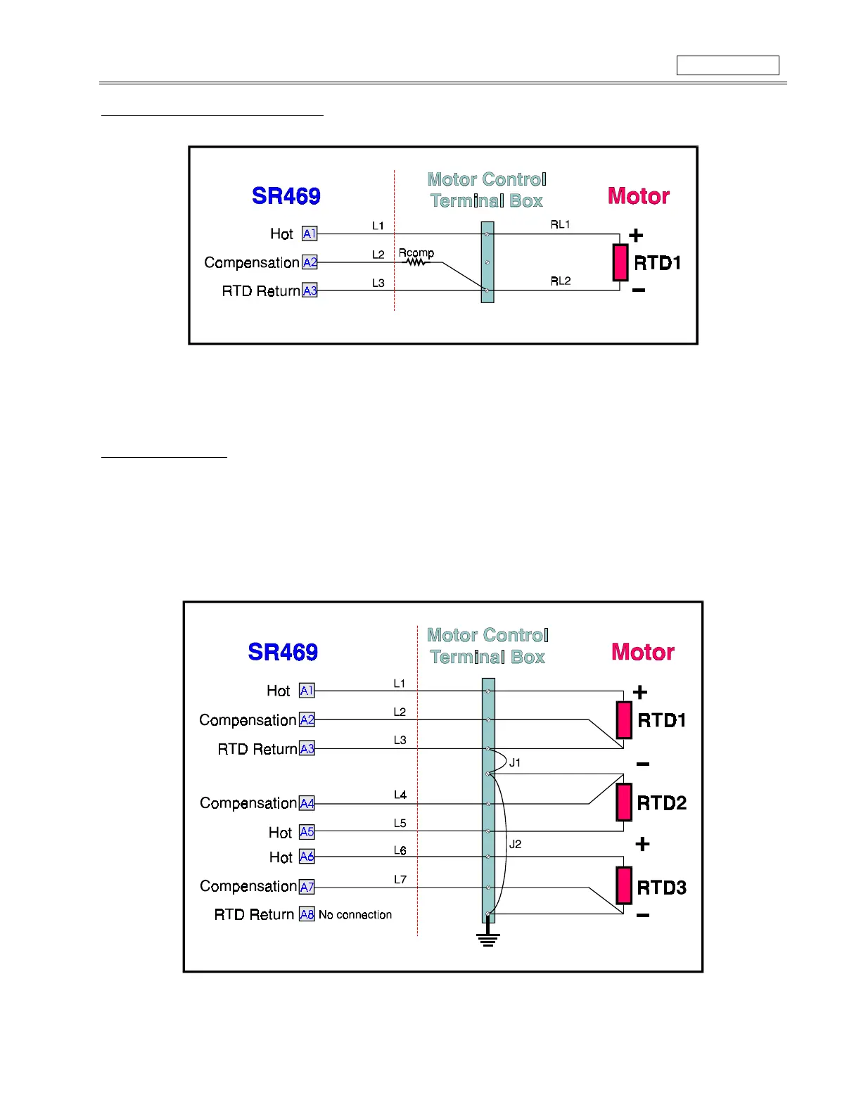 If the RTD Return leads are tied together and grounded at the motor, only one RTD Return lead can be run back to the SR469. See