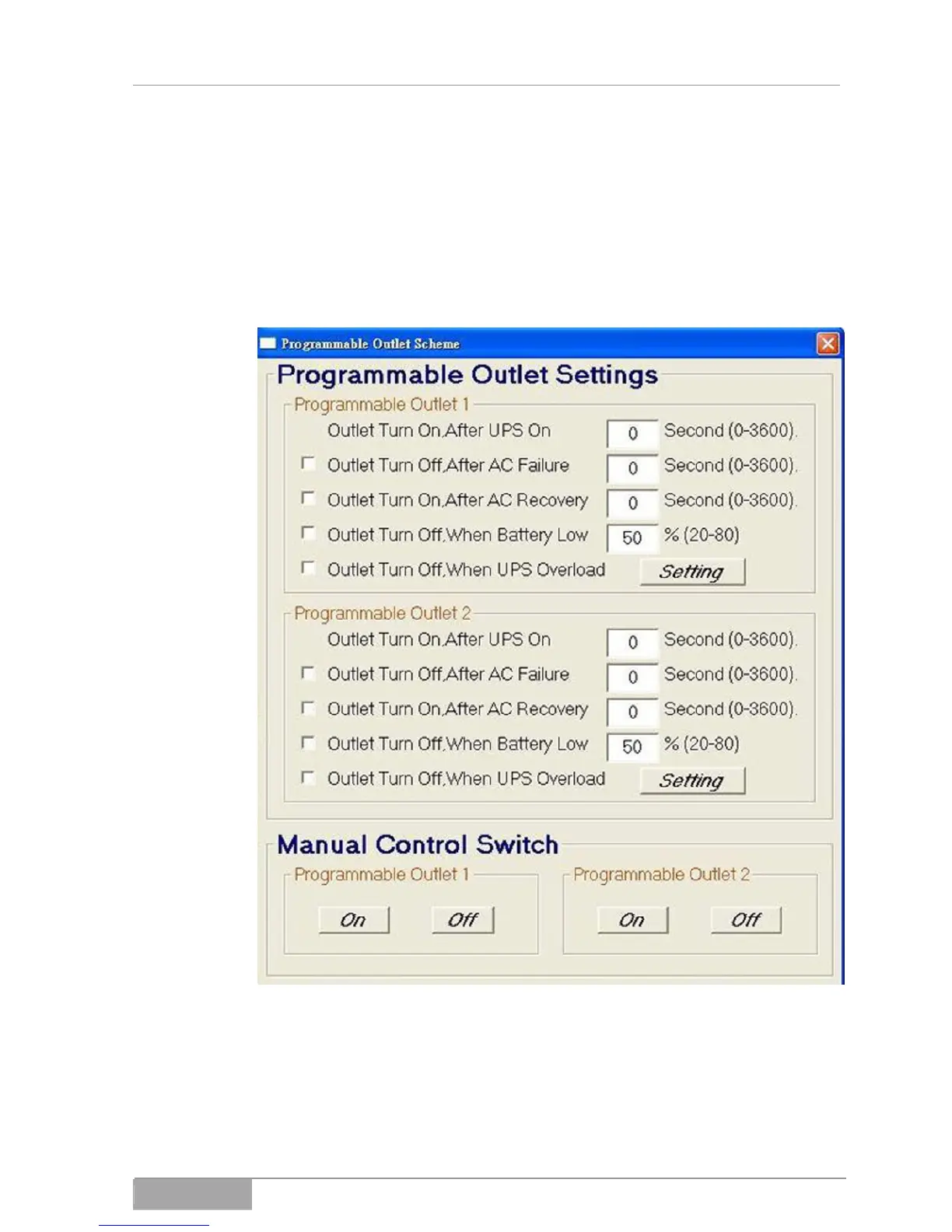 Click Programmable Outlet Scheme to make the following settings: