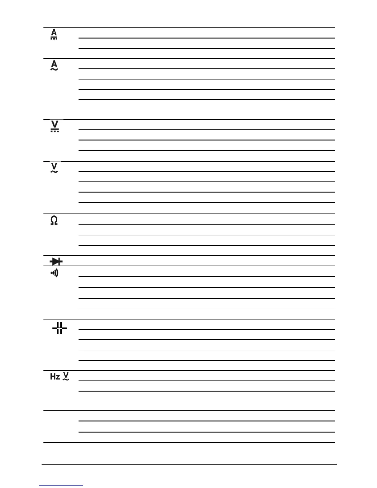 Hz 9.999, 99.99, 999.9, 9.999 k, 99.99 k,199.9 kHz