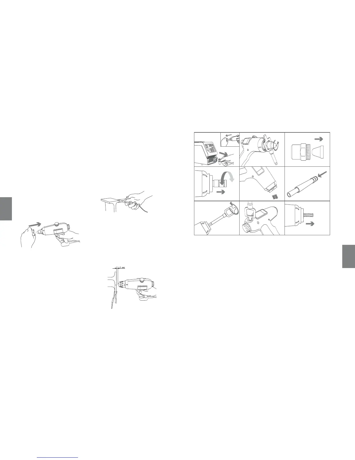 Place nozzle with energized jet 1.2 - 2.0 mm (0,05-
